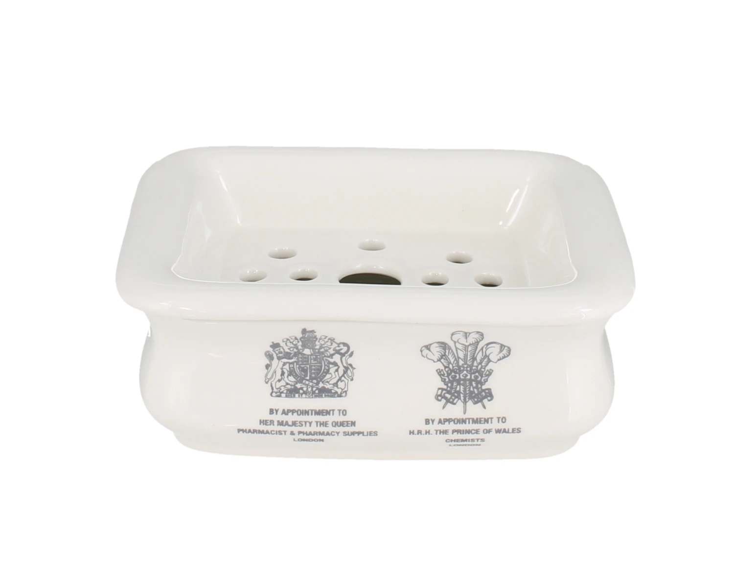 Made in Stoke-on-Trent especially for D.R. Harris by Burleigh at the Victorian Middleport Potteries. This beautiful two piece soap dish features a removable top section with drainage holes to ensure your soap does not become excessively damp and soggy. This Soap Dish comfortably accommodates all D. R. Harris soaps.