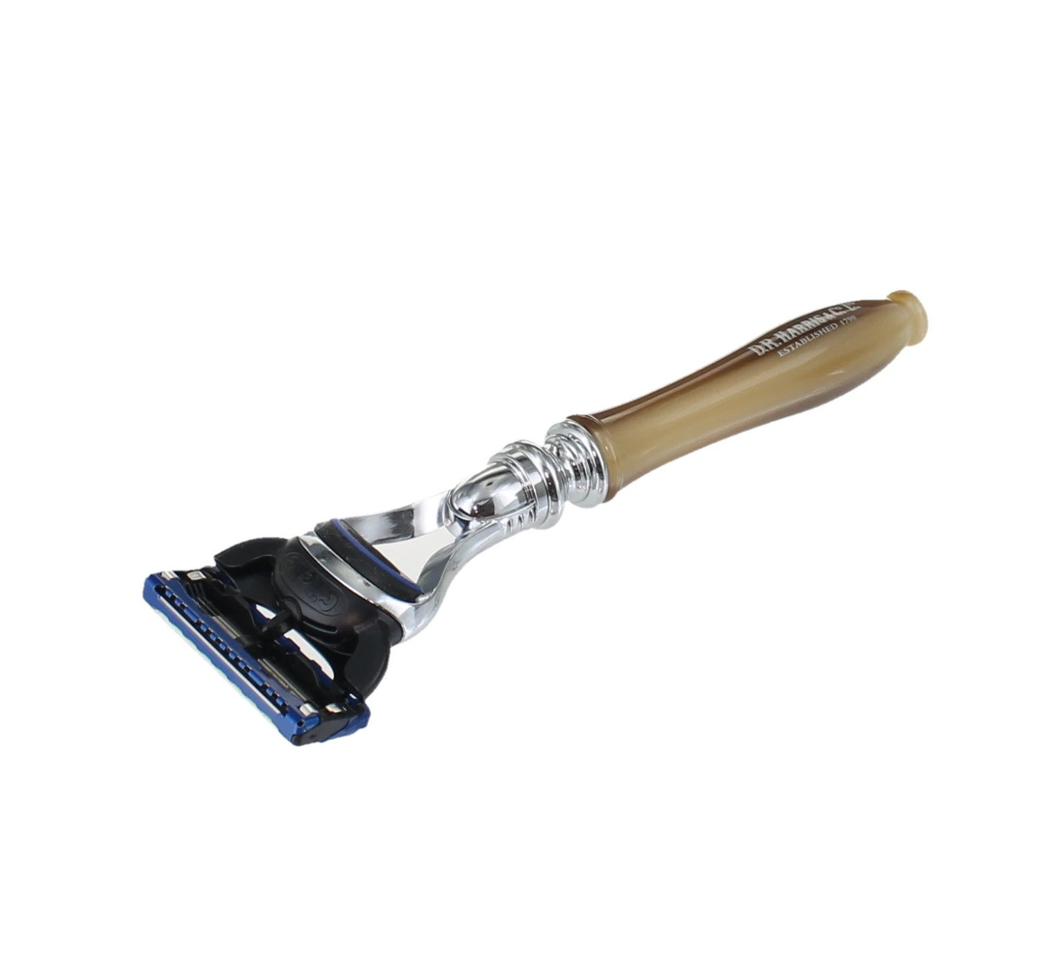A combination of our traditional style razor handle with the 5 blade shaving technology of Gillette Fusion. Available in horn, imitation Ivory or Ebony finish.