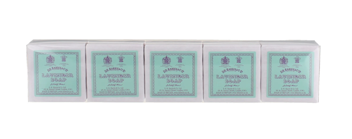 A pack of 5 40g bars of our classic Old English Lavender Soap. Ideal for use as guest soaps or for travel, one bar will last at least 10 days. Triple-milled for long-lasting, luxurious lather.