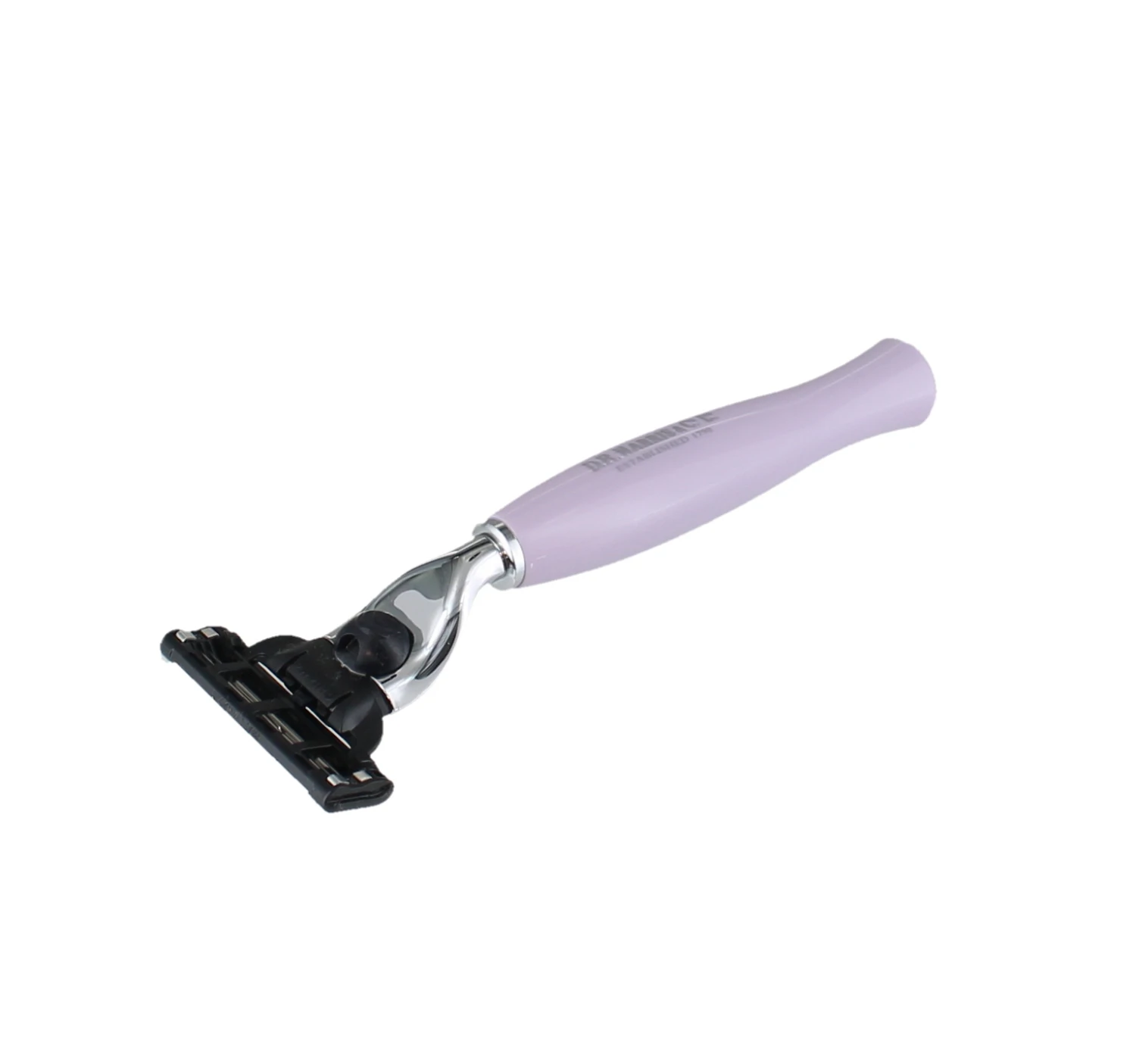 Mach 3 Razor with a medium weighted handle in a vibrant pastel blue shade. The razor head is compatible with Gillette Mach 3 heads as well as Gillette Venus blades for women.