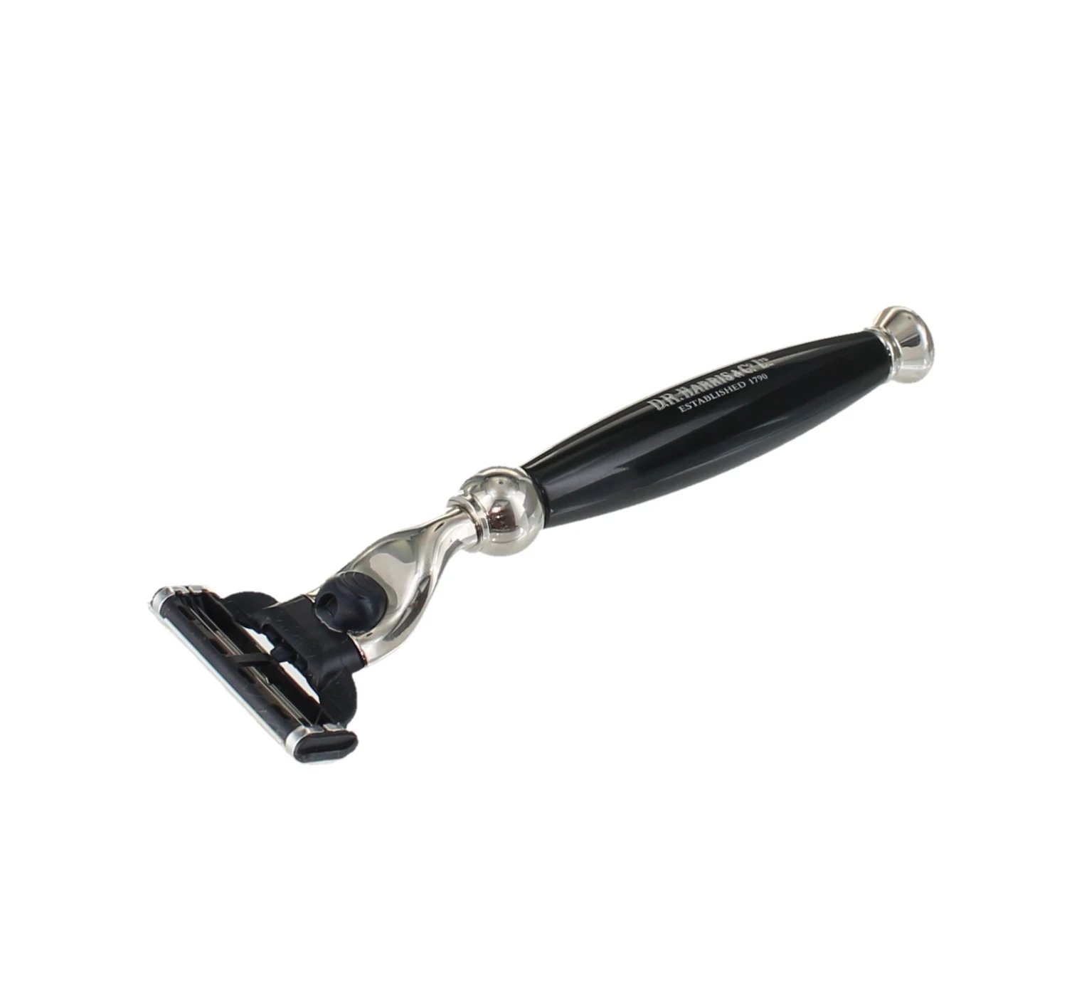 A traditional D.R. Harris embossed razor to fit with the Gillette Mach 3 head, combining the best of modern shaving products with the finest English craftsmanship. Available in Ebony, Ivory and Horn finishes with Nickel accents.