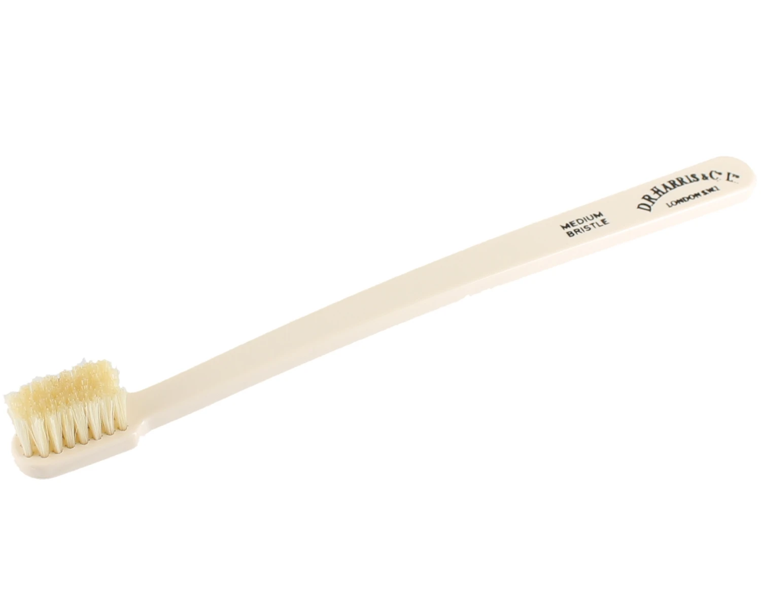 With a smaller head to aid precision brushing and boar bristles in a unique design to aid cleaning in between teeth and increase comfort. This toothbrush features a pleasing handle made from high quality plastic and includes the D. R. Harris logo embossed on the front. The medium bristle toothbrush is the most popular size of our full-size toothbrushes and is suitable for most users.