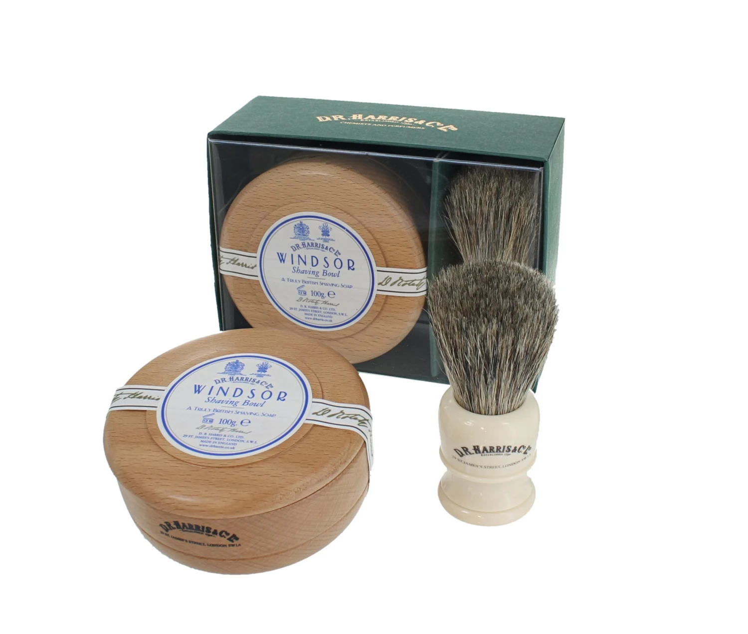 This luxurious wet-shaving gift contains a traditional Shaving Bowl in hand-turned beech wood paired with a high quality shaving brush which has been designed and made for D. R. Harris exclusively by one of the top British brush makers. The solid Windsor scented shaving soap is of the finest quality and has been triple-milled to increase the richness and luxuriousness of the lather. Incredibly economical, each soap will last for several months.